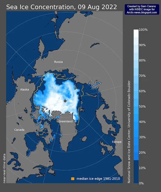 The image below, from NSIDC, also shows sea ice concentration on August 9, 2022.