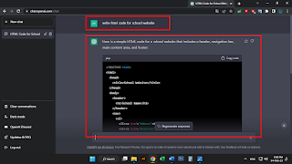 এমনকি আমরা যদি চাই যে একটি ওয়েবসাইট তৈরি করতে। আর যা করতে হলে আমরা সকলেই জানি যে কোডিং এর প্রয়োজন। এখন কি কোড লিখতে তা ধরেন আপনার জানা নেই। কিন্তু আপনি চাইলে এর মাধ্যমে সহজে ওয়েবসাইট তৈরি করার জন্য একটি কোড লিখিয়ে নিতে পারেন। এর জন্য আপনাকে যে ধরনের ওয়েবসাইট বানাবেন তা উল্লেখ করে দিতে হবে। যেমন write html code for school website আর দেখুন কি সুন্দর আপনাকে একটি কোড লিখে দিচ্ছে।